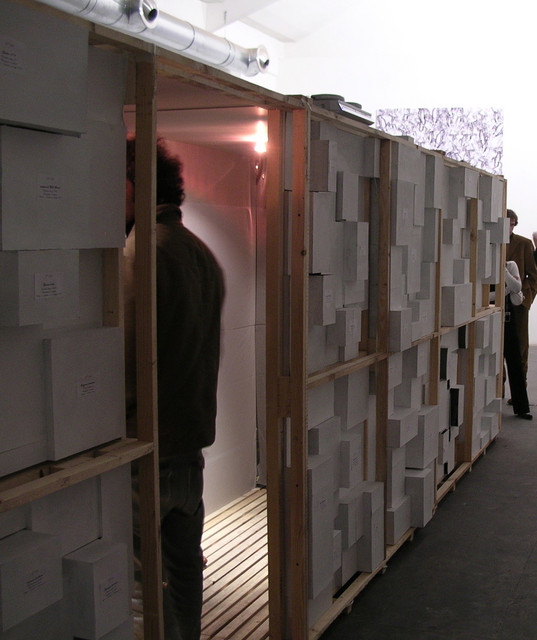 This is a box surrounded by shelves where they are assembled together and placed hundreds of different boxes: ideal containers of everyday life of the person. Placed on shelves next to each other, contain hidden worlds, concepts, objects, emotions, visions, perceptions, ideas, subjects, etc. ..
